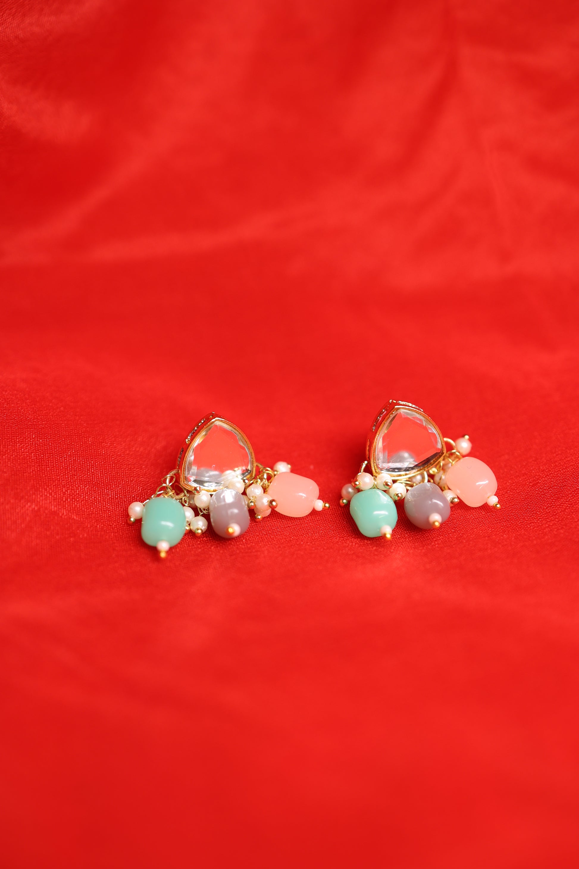 Elevate your look with this stunning pastel choker set, designed with a luxurious gold toned base and adorned with intricate mirrors, pearls, and delicate beads. The mirrors are beautifully framed and enhanced by hanging bead details that catch the light with every movement. Featuring a soft palette of pastel hues, this set brings a subtle yet elegant pop of colour to your outfit. The choker is secured with an adjustable rope tie, ensuring a comfortable and custom fit for all neck sizes.