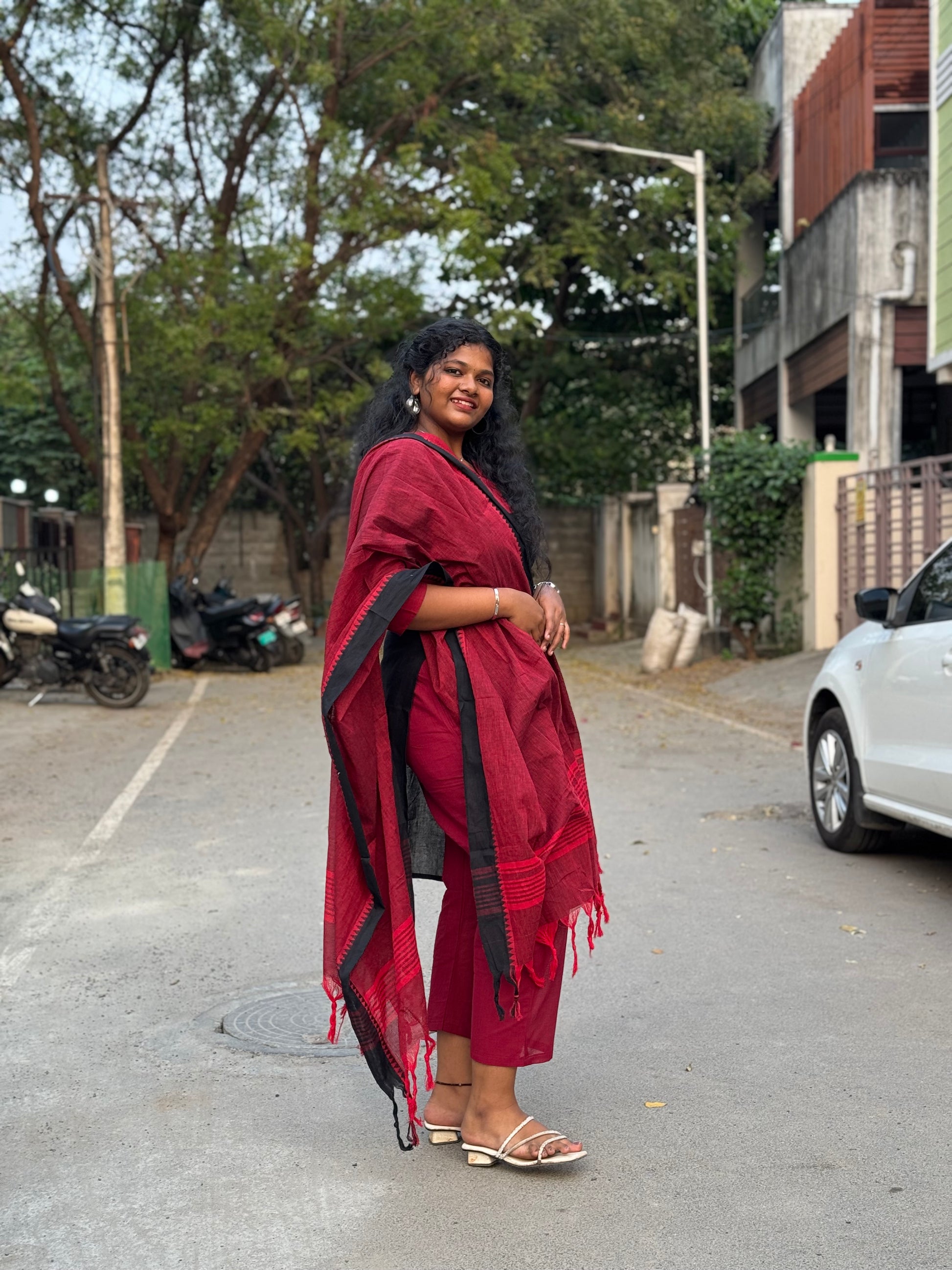This elegant Readymade Bhavya kurti set features a beautifully designed V-neck pattern that adds a unique and stylish touch to your everyday wardrobe. Made from breathable khadi cotton, the fabric feels soft on the skin and keeps you comfortable throughout the day. The set includes a kurti top, matching pants, and a graceful shawl (dupatta), creating a complete and effortless look. Its lightweight and airy material makes it an ideal choice for summer wear, while the simple yet refined design makes it perfect for daily wear, office wear, or casual outings. Comfortable, stylish, and versatile, this khadi cotton kurti set is a must-have for anyone who loves elegant and practical fashion.